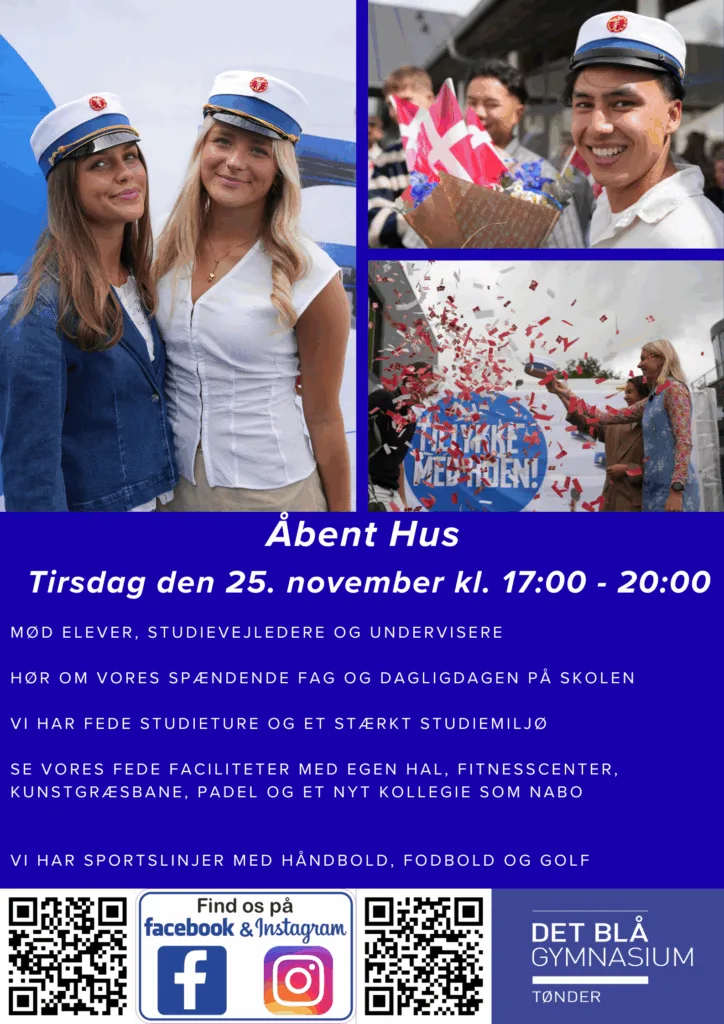 Vi er altid parate til en snak om dine muligheder med en uddannelse fra Det Blå Gymnasium Tønder – skriv til os, og vi finder hurtigt et tidspunkt til en rundvisning og en samtale. Du kan også komme til vores åbent hus arrangement. VI HOLDER ÅBENT HUS LØRDAG DEN 31. JANUAR 2026 KL: 10:00 – […]