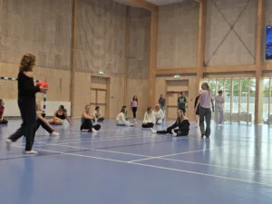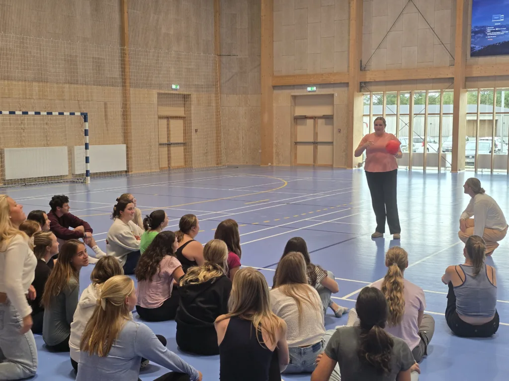 Dagen sluttede med lidt instruktion i at spille håndbold af nogle af vores dygtige elever fra 3.c. Det hele sluttede med en kamp imellem to hold bestående af de amerikanske elever med lidt dansk forstærkning.